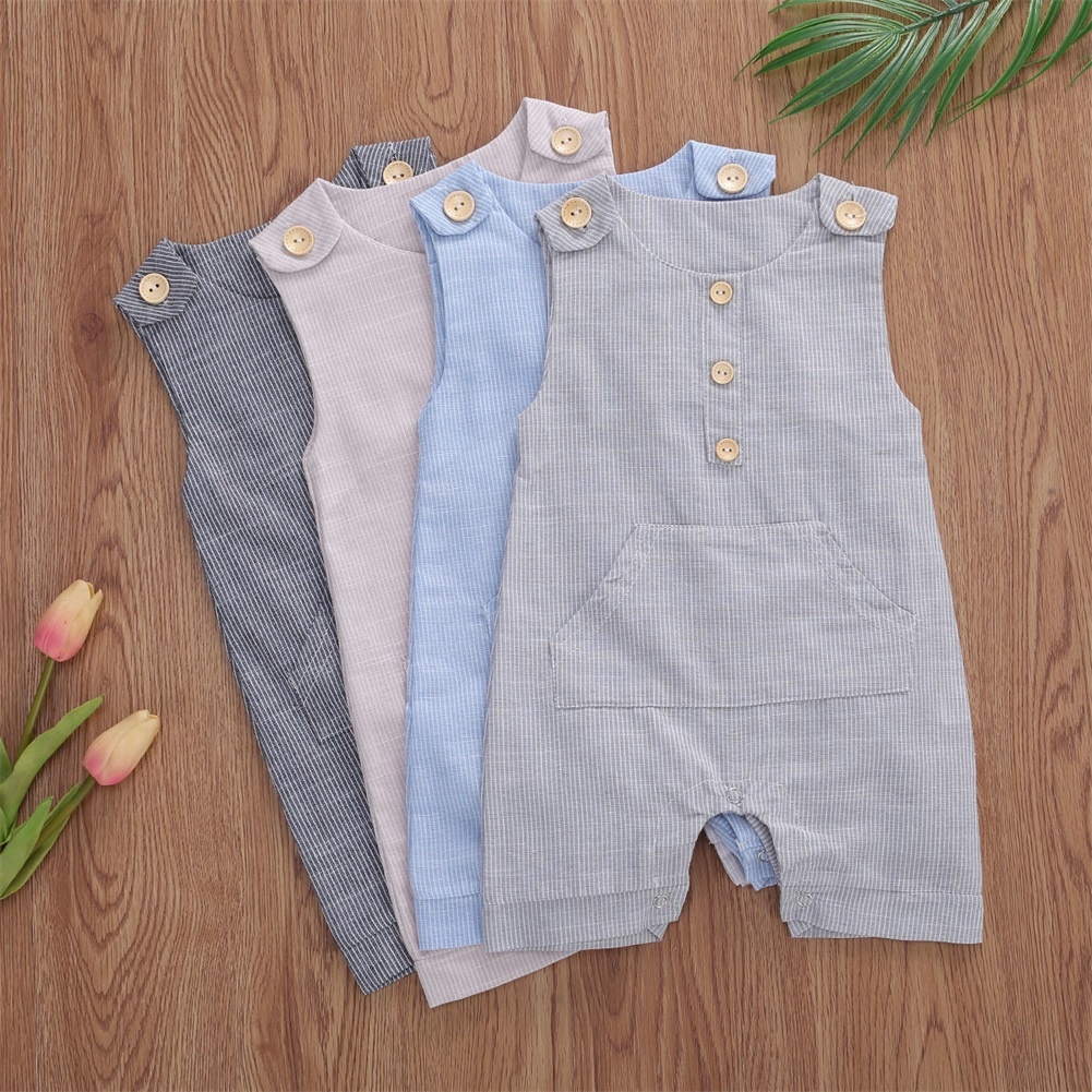0 18m Newborn Baby Boy Romper One Pieces Buttons Striped Jumpsuit Cotton Linen Playsuit Sleeveless Clothes Outfits Walmart Com